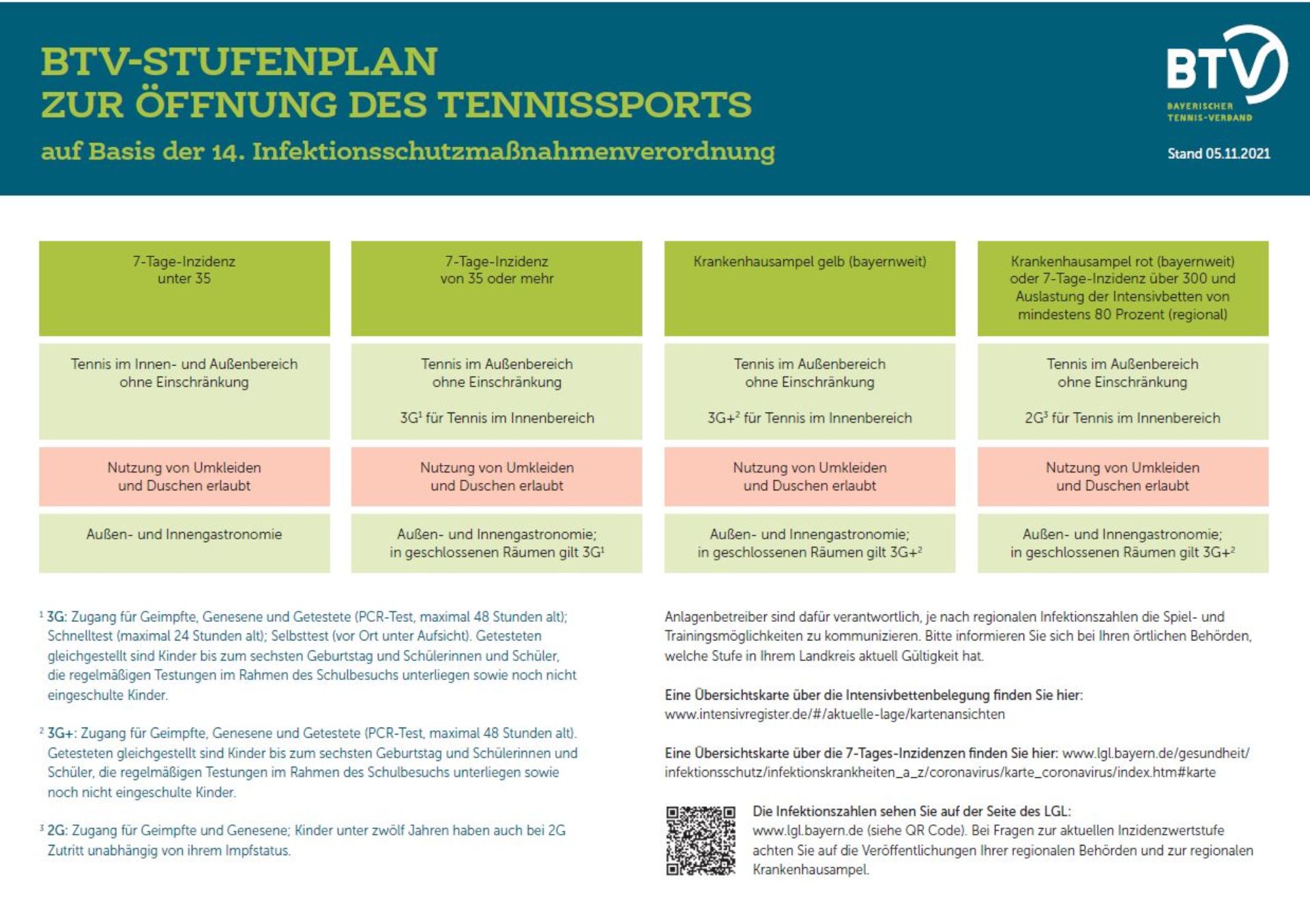 Am 3. November 2021 hat das Bayerische Kabinett eine Verschärfung der Corona-Regelungen festgelegt und die „Krankenhausampel“ überarbeitet. Die neuen Regeln sind nachstehendem BTV Stufenplan zu entnehmen. Die Vorstandschaft bittet um entsprechende Beachtung.