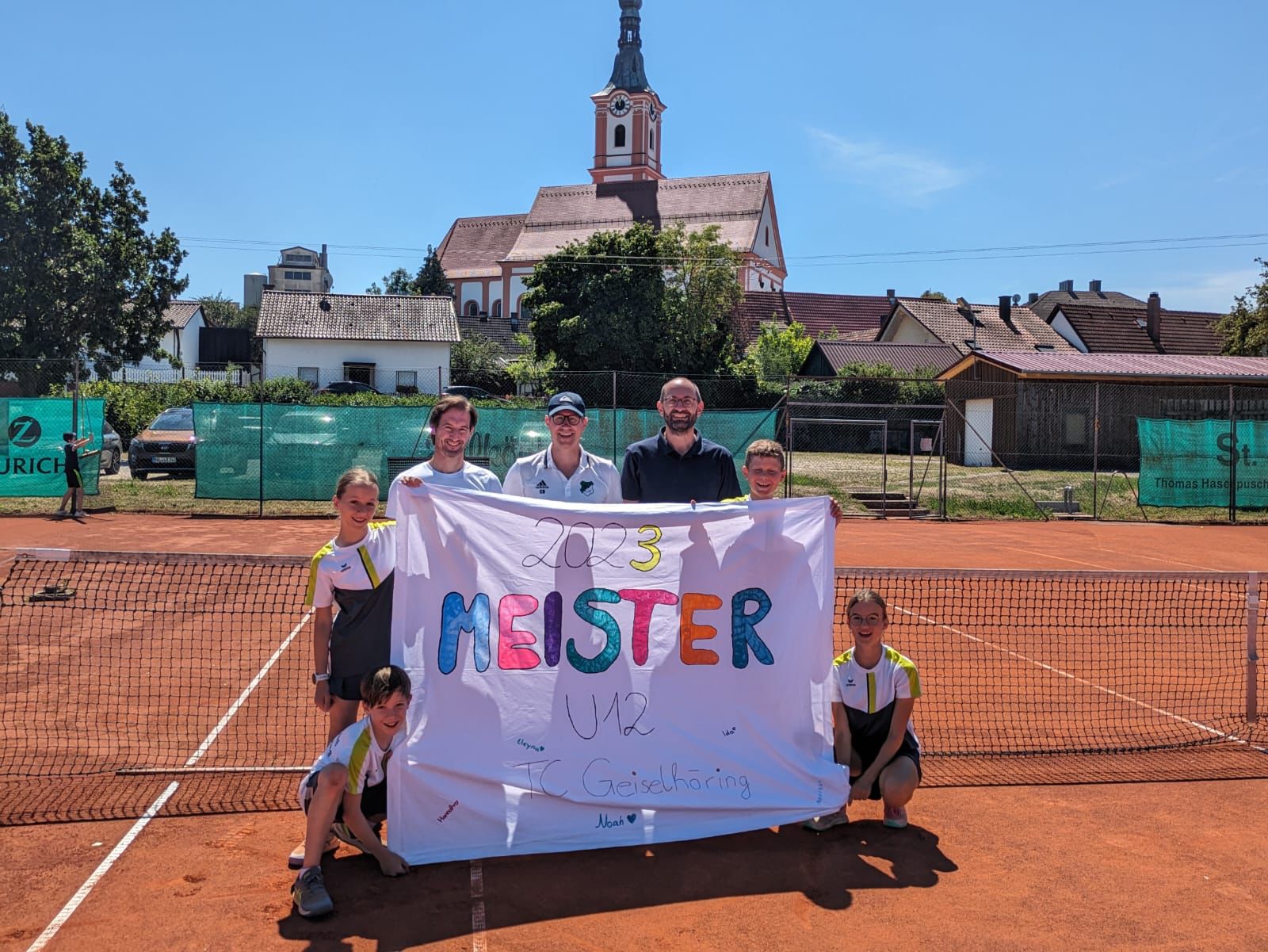 Die Bambini-Mannschaft des TC Geiselhöring, die in dieser Saison wieder durch den SV Sallach verstärkt wurde, feiert heuer nach dem letztjährigen zweiten Platz die Meisterschaft in der Südliga 5. Durch ein klares 5:1 am letzten Spieltag beim Derby gegen den TC Laberweinting auf der heimischen Anlage sicherte sich der Geiselhöringer Tennisnachwuchs souverän den ersten Platz. Die Mannschaft bestehend aus Eleyna Georges, Ida Plank, Hannah Stierstorfer, Noah Daffner und Moritz Stierstorfer konnte sich im Saisonverlauf z. T. stark verbessern und ließ nach einem Unentschieden im Auftaktspiel gegen den TC Langquaid nur noch Siege gegen die Mannschaften aus Bad Abbach, Saal a.d. Donau, Essenbach und Laberweinting folgen. Die Vorstandschaft des TC Geiselhöring verfolgte mit den zahlreichen Zuschauern aufmerksam das letzte Saisonspiel und war im Anschluss sogleich bei den ersten Gratulanten der frischgebackenen Meister.