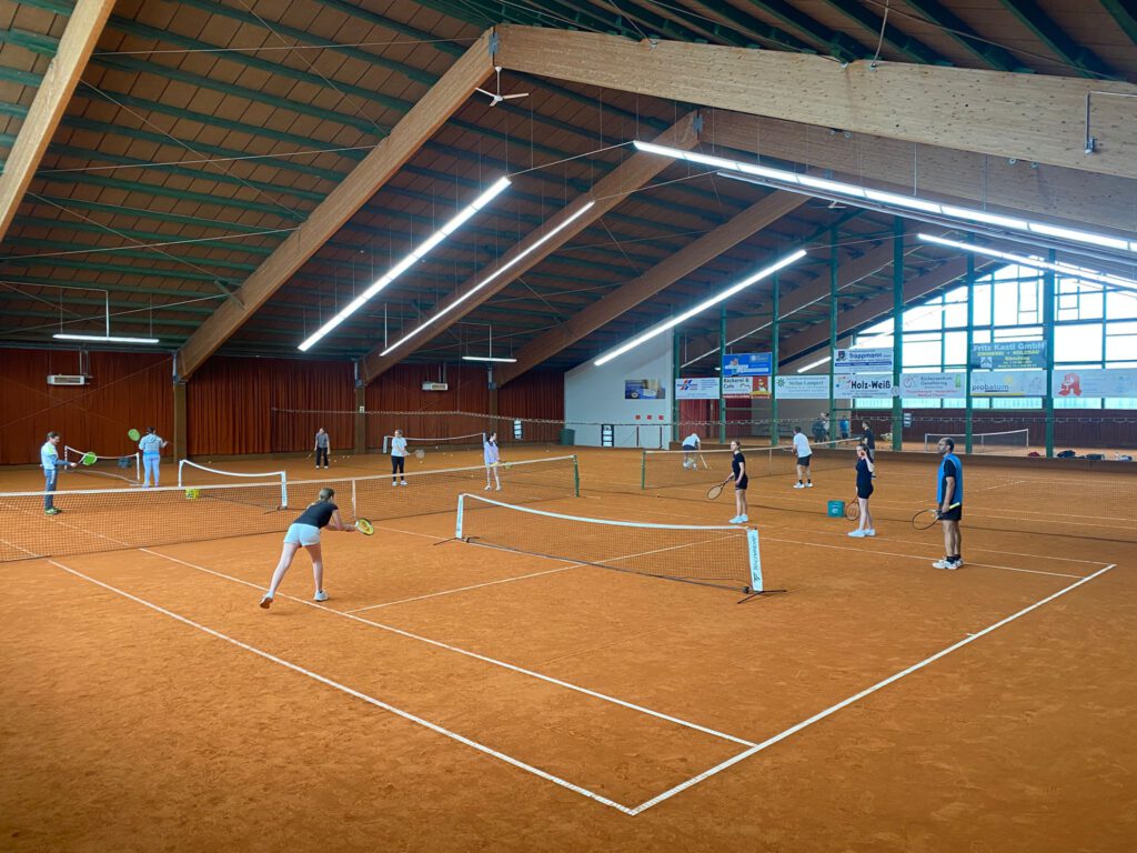 Nach einer kurzen Pause, in der gebrauchte Tenniskleidung, Schuhe oder Schläger abgegeben oder erworben werden konnten, kamen am Nachmittag 20 Damen und Herren zu einem Doppelturnier zusammen. Über mehrere Spielrunden trug man in immer abwechselnden Zusammenstellungen spannende Doppelpartien aus. Die Teilnehmenden hatten unterschiedlichste Spielerfahrung, weshalb nicht zwingend der Erfolg, sondern das sportliche und gesellschaftliche Miteinander – eines der Hauptziele des Tennisclubs – im Vordergrund stand. Trotzdem hatten am Ende welche die Nase vorn: Patricia Biermeier und Susi Pacheco Zapata waren letztlich die Gewinnerinnen eines unterhaltsamen Nachmittags.